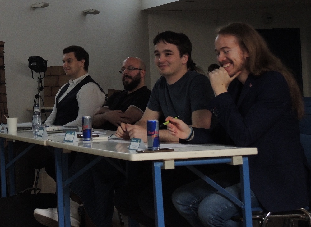 Jako první se před publikum postavil tým Amonitky ze ZŠ Tyršova ve Slavkově u Brna. Ve své prezentaci se pomocí stroje času přenesly do roku 1805, kdy u Slavkova proběhla bitva tří císařů. Zaměřily se na nesmyslnost války a vyzvaly publikum k tomu, aby si vážilo, v jaké době a na jakém místě žije.