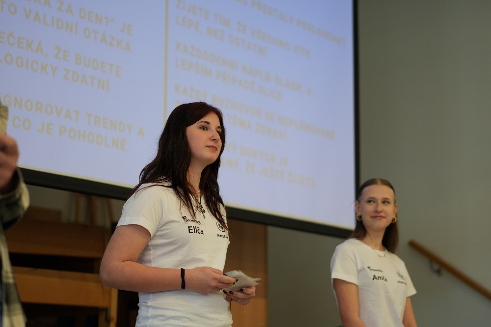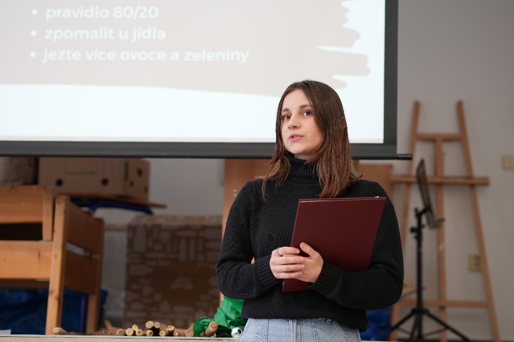 Po přestávce nastal čas na zahájení druhé faze dne, tedy na prezentace kategorie středních škol, ve které soutěžily mimo jiné tři týmy až z dalekého Českého Těšína. Středoškoláckou kategorii zahájil dvoučlenný tým Přirozený a Přirozenější, kteří ve své prezentaci představili pojmy jako Déjà vu a spánková paralýza. ElfBar se nám snažil představit možné důvody, proč lidé začínají s vapováním, VAKoveverky nám naopak představili AI a její budoucnost a tým Zzz se zabýval zlozvyky, a jak se jich zbavit. Celou prezentační část dne nám zakončil později vítězný tým Zudela z Českého Těšína prezentující o životě Masajů a vlastním projektu, jak této komunitě pomoci.