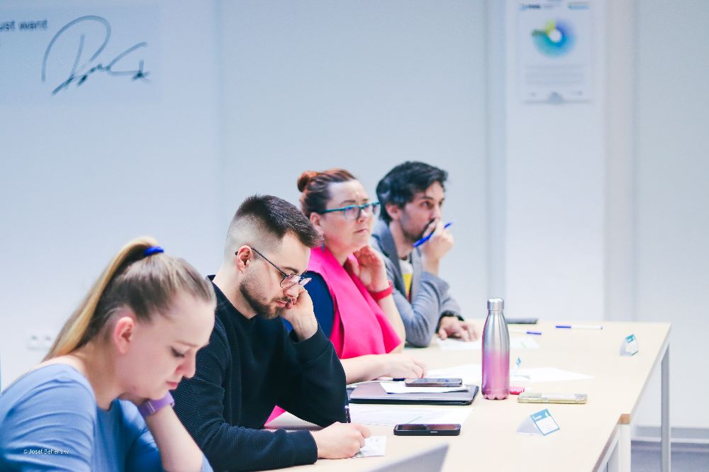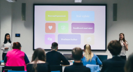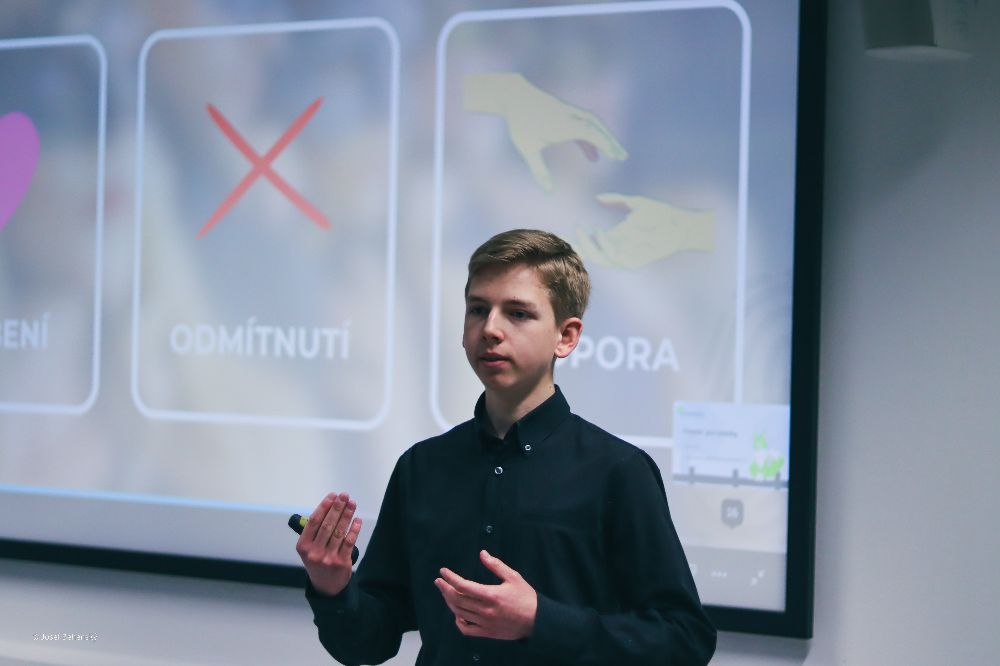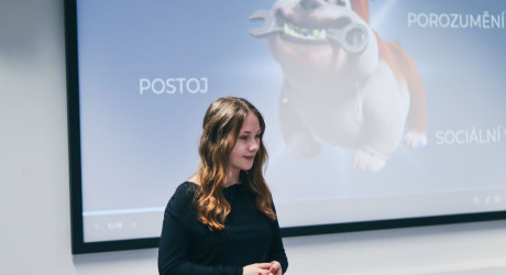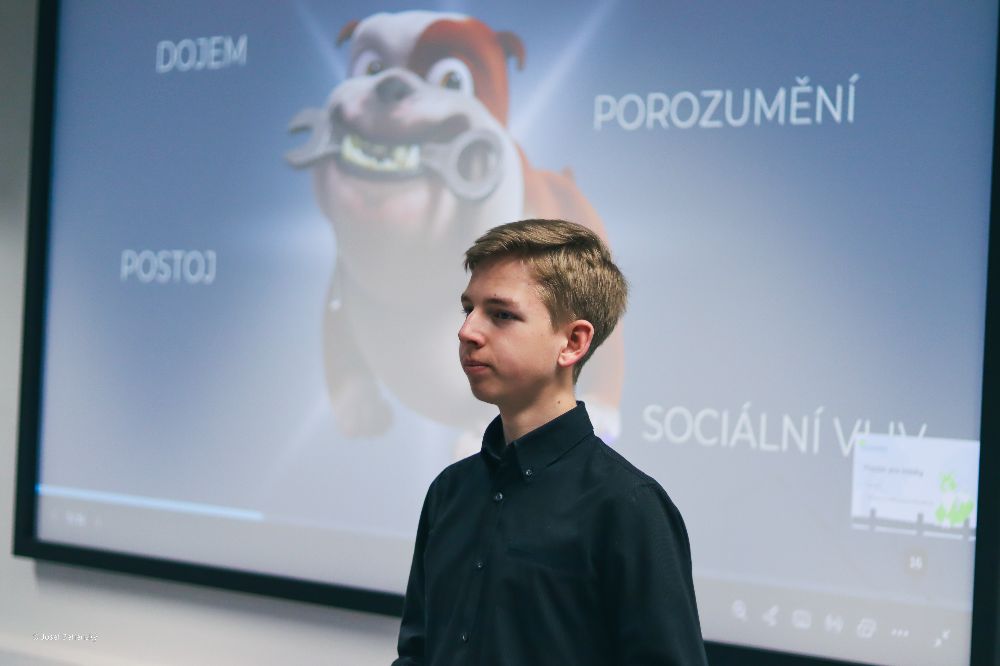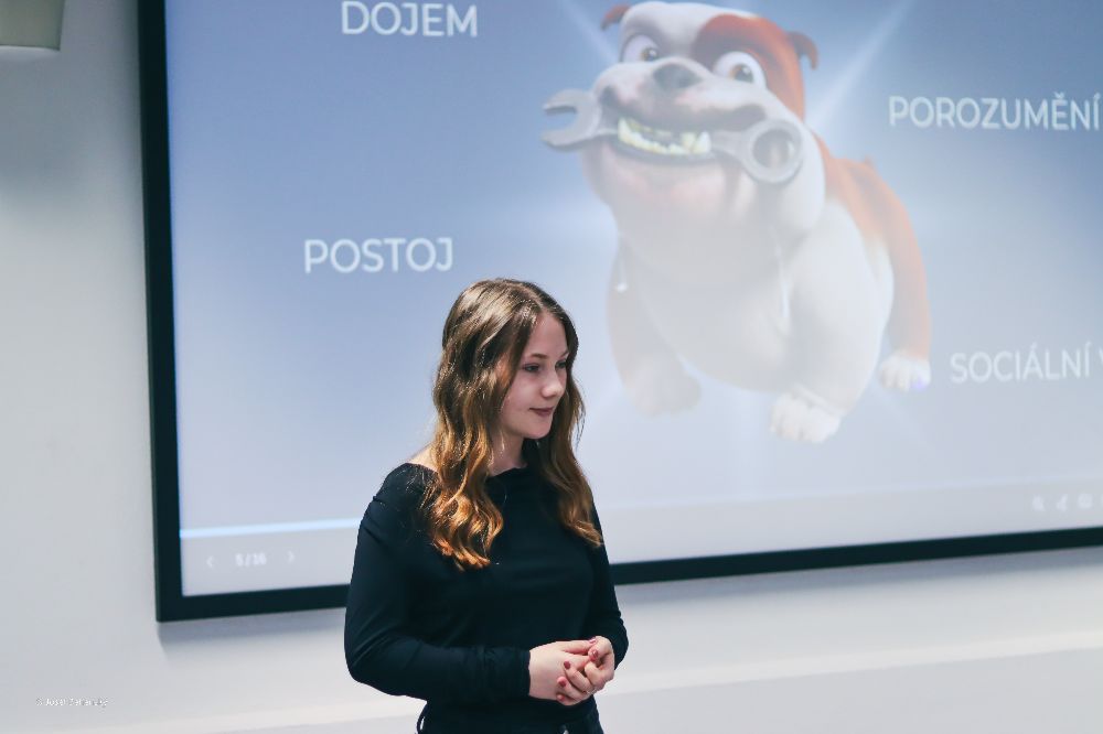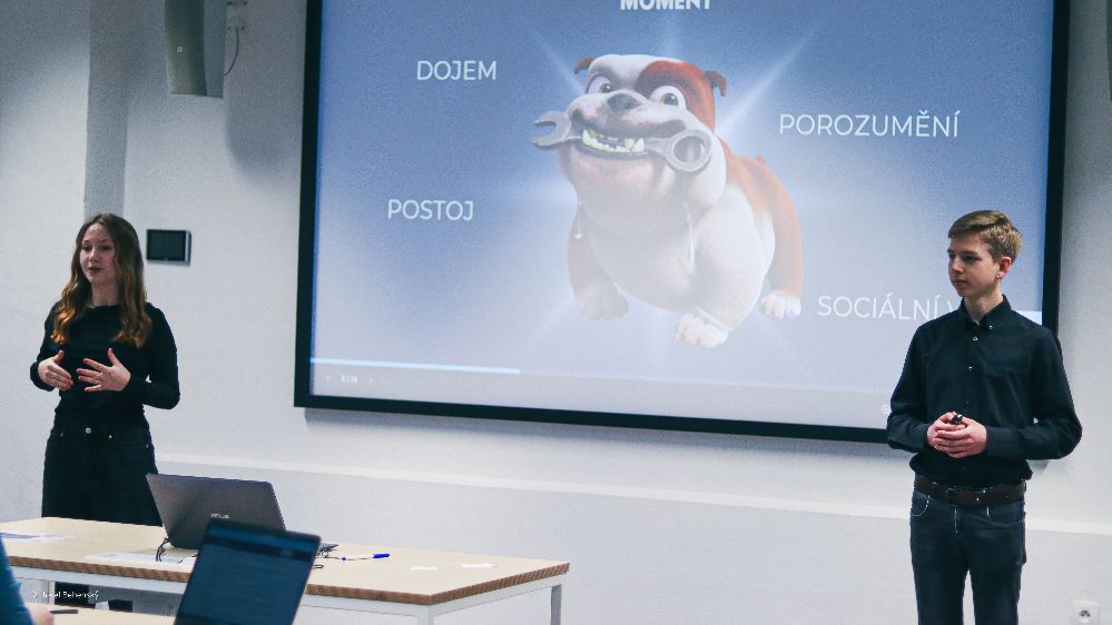 Hned po skončení úvodní prezentace se slova ujal tým Agenti K. Co znamená to K, říkáte si? No jsou to přece Agenti Komunikace. Agent Jakub a agentka Anežka nám objasnili, jak vnímáme různé roviny vrstev v komunikaci. Pod tímto si můžeme představit například gestikulaci, mimiku, tón hlasu a další. Pomocí rychlé ankety jsme také zjistili, že nejvíce se při komunikaci s cizím člověkem řídíme věkem a jaký má vůči nám postoj.