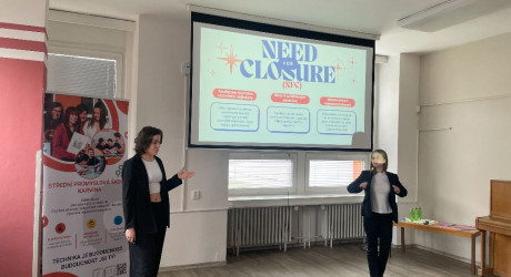 Tým 2K předvedl konverzaci mezi dvěma osobami o pojmu NFC (Need For Closure). Karolína Vladíková společně s Kristynou Prášilovou představila, jak NFC funguje a společně popsaly funkce různých částí mozku, jako je prefrontální kortex nebo amygdala. Jakou roli tyto části mozku hrají v našem životě? Nebály se ani chemické stránky tohoto tématu – kortizolu a všemi známého dopaminu.