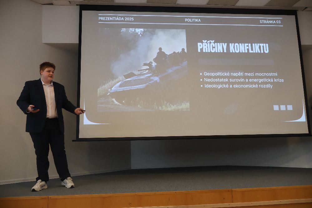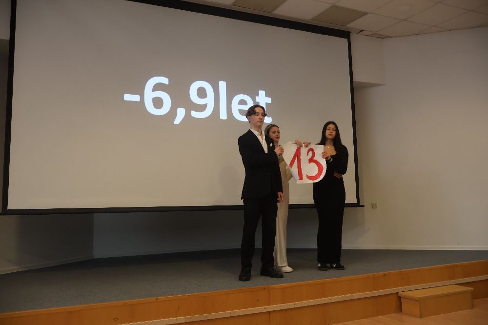 Z Gymnázia T. G. Masaryka v Zastávce přijel tým Tři je víc než dva s tématem třetí světová válka… a pak už nic. Nejprve se podívali na příčiny potenciálního konfliktu, jako jsou geopolitické napětí mezi státy světa. Dále tým rozebral důsledky konfliktu, mezi které patří kolaps diplomatických vztahů, rozpad některých států nebo celosvětový restart ekonomiky. Nastínili také spojitost třetí světové války a AI, která by znamenala rychlé šíření falešných informací.