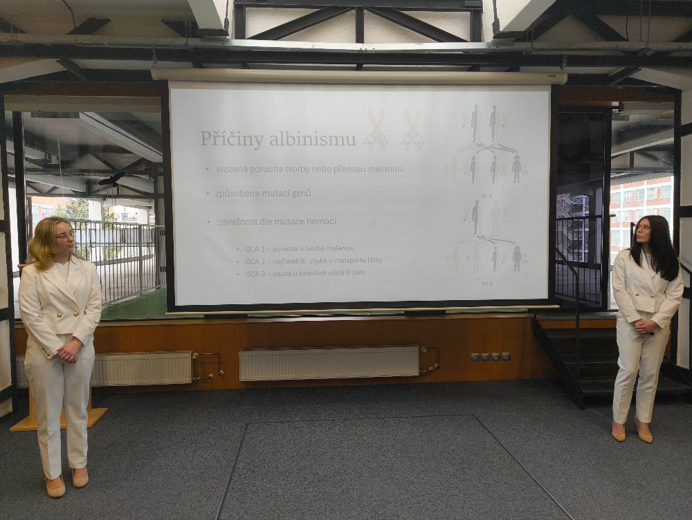 Albínky zajímala nemoc způsobující deficit melatoninu. Publiku představili dopad této nemoci na organismus lidský i zvířecí. Posluchače obohatily také informace, jak správně rozeznat albinismus od leucismu.