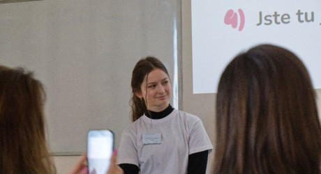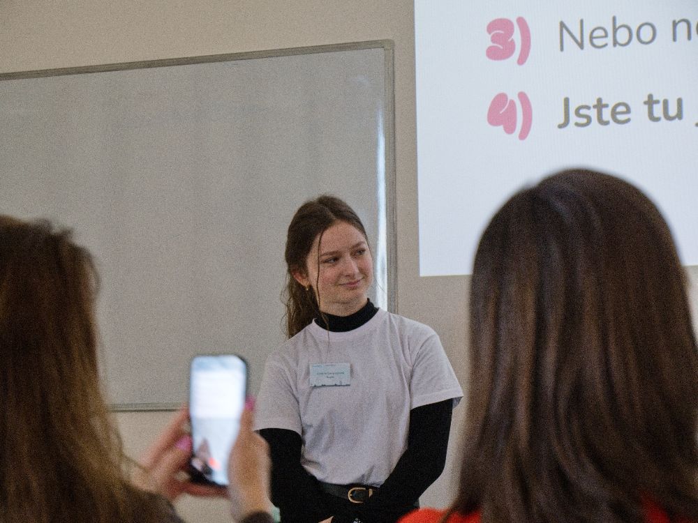 V místnosti C se porotcování ujala Kateřina Müllerová, markeťačka se zkušenostmi z neziskového sektoru, Vítězslav Kříž, odborník na AI ve vzdělávání, následovala Denisa Dědičová, lektorka a konzultantka vyučující na UMPRUM, a nakonec Henrieta Holúbenková, TEDx řečnice a zakladatelka vzdělávacího programu Životológia.