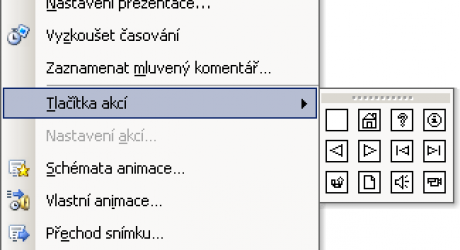 Kromě textu, obrázků, tabulek, grafů a dalších objektů můžeme do prezentace přidat i tzv. Tlačítka akcí. Ta slouží k provádění rozličných úkonů.