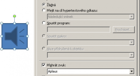 - Přehrát zvuk (v soutěžní prezentaci ale zvuky nepoužívejte, je to proti pravidlům)