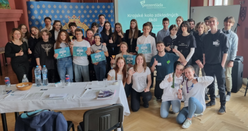 22.3. se na gymnáziu J.K. Tyla koná druhé krajské kolo Prezentiády pro Královéhradecký kraj. Tentokrát ovšem už se staršími studenty, přesněji se středoškoláky. Co se ale naopak nezměnilo, tak byl poměr kluků a holek, který byl opět velmi nevyrovnaný. Děvčata se asi holt méně bojí vystupování před publikem. To ale ničemu nevadí, neboť si všichni soutěž náramně užili, přičemž nezapomněli vydat ze sebe opravdu maximum. Na Grandfinále však mohl postoupit jen jeden tým a tím byly Esa z lesa.